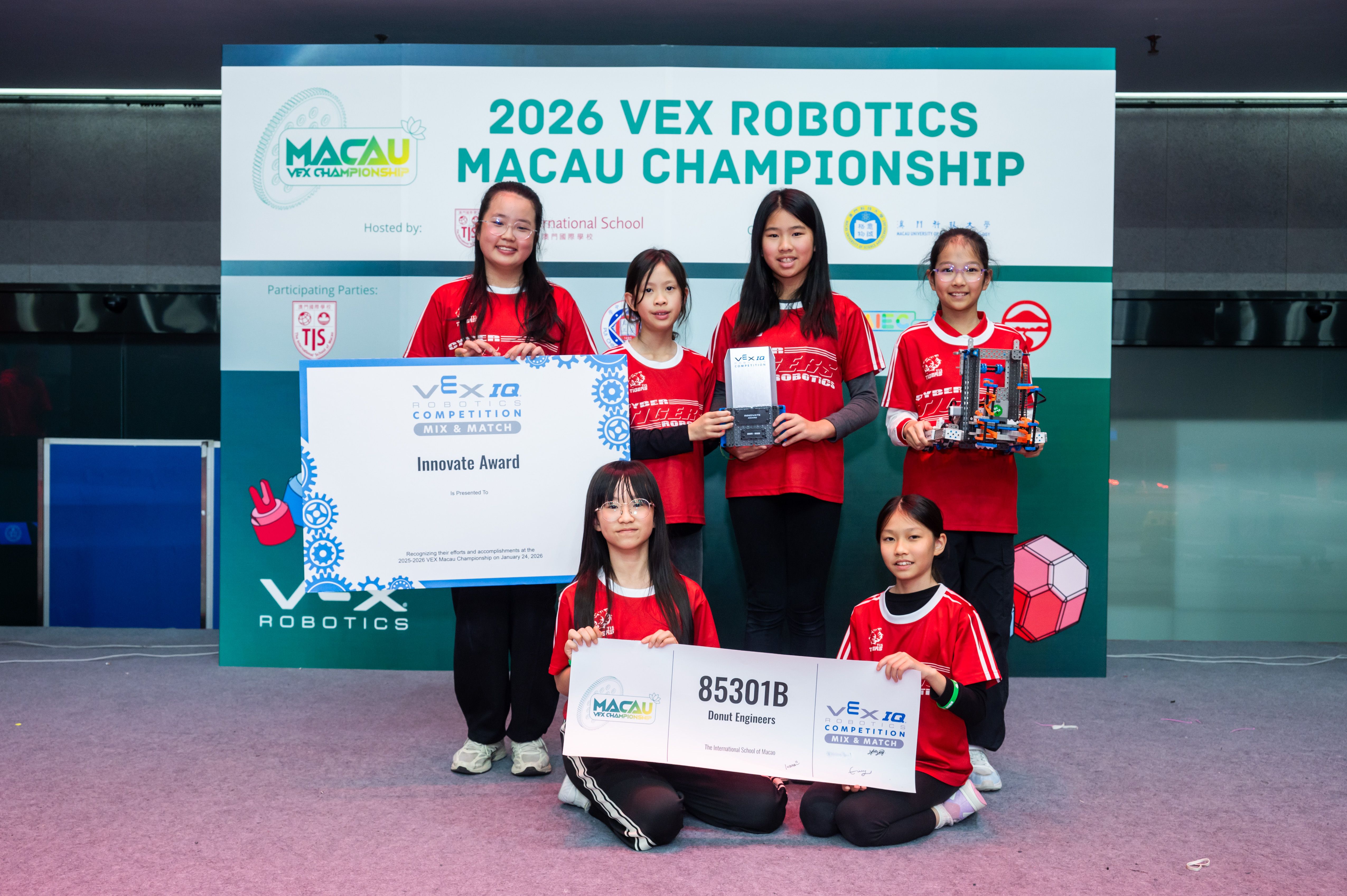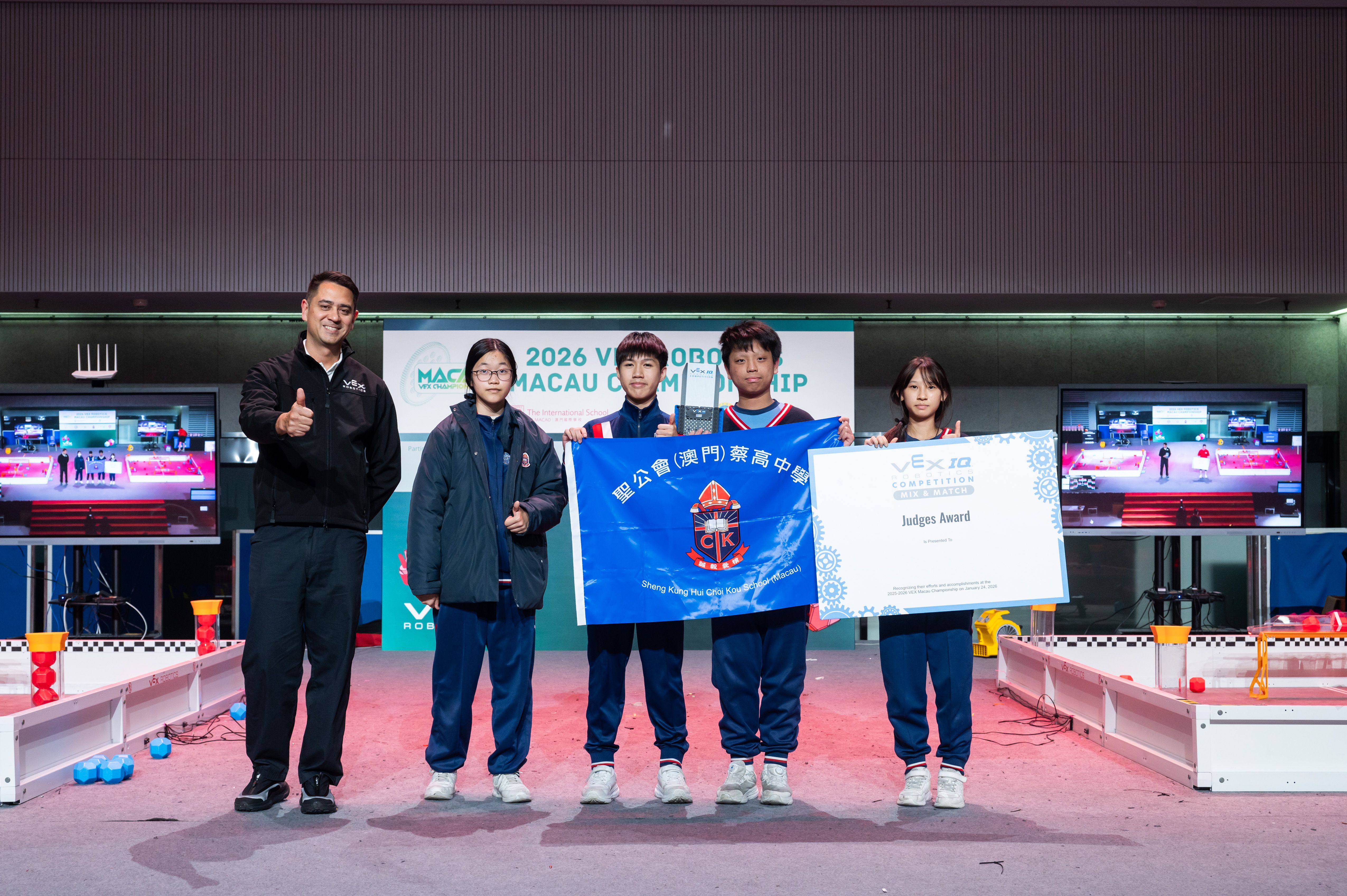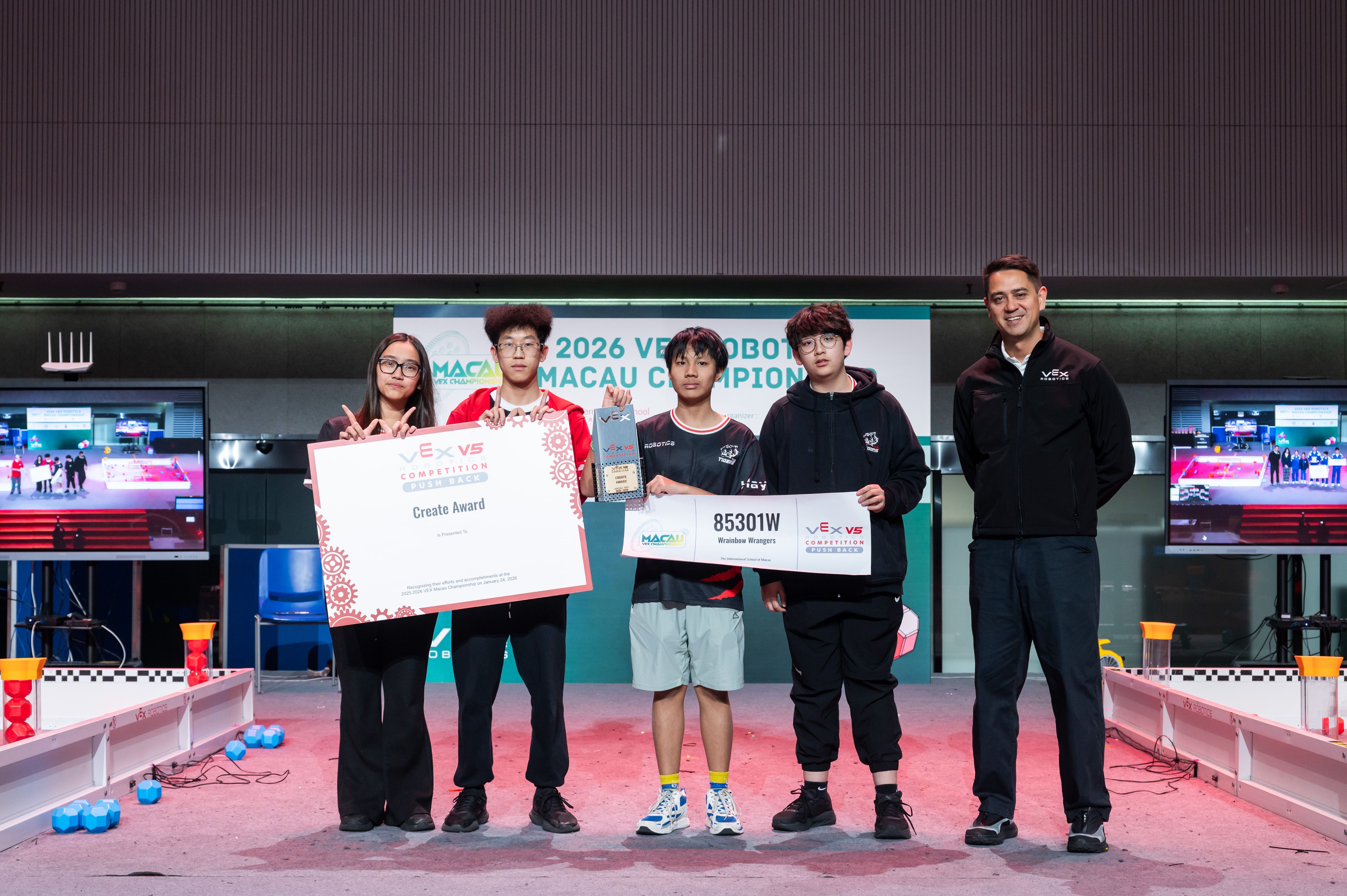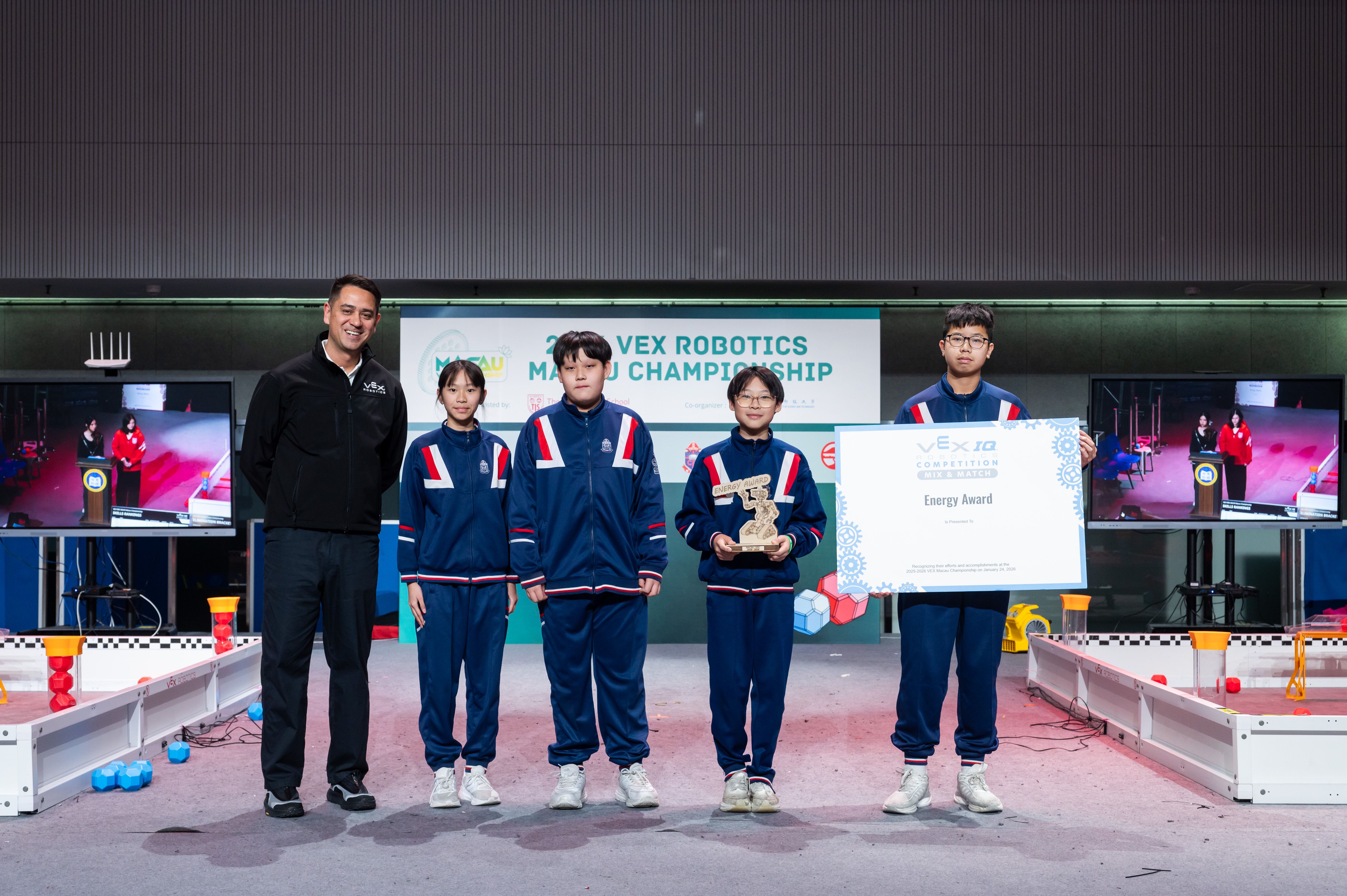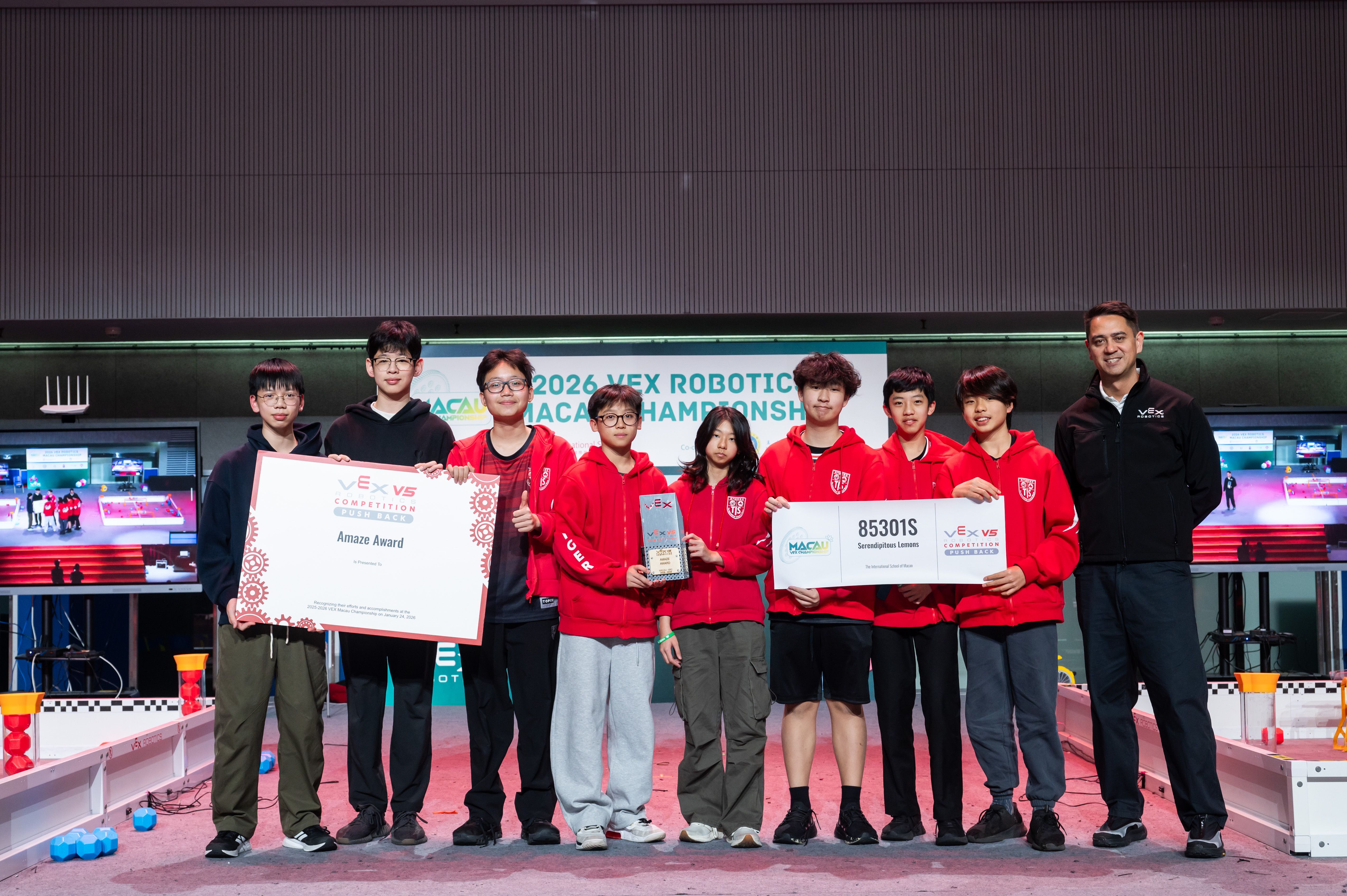 One of the highlights of the event was the announcement of the winners of the Excellence Award, the highest honor, recognizing overall excellence in design, teamwork, competition performance, and documentation. These winners qualified for the VEX World Championship, the largest robotics competition in the world, to be held this year in St. Louis, MO, USA. Among the recipients is TIS robotics team 85301X “No!”, who will be attending the world championships for the second consecutive year, proudly representing TIS and Macao on the international stage.